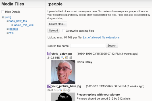 If the file is in a different namespace, click on the left hand tree links to select the namespace where it's stored. then select the file.